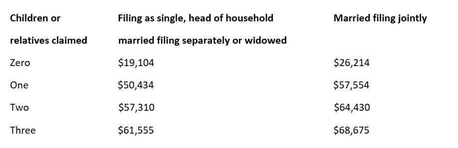 • The Earned Income Tax Credit amounts for qualifying taxpayers in 2025 are as follows: