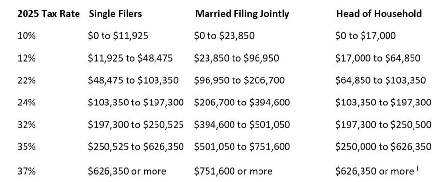For the 2025 tax year, according to the IRS, the tax rates are as follows: